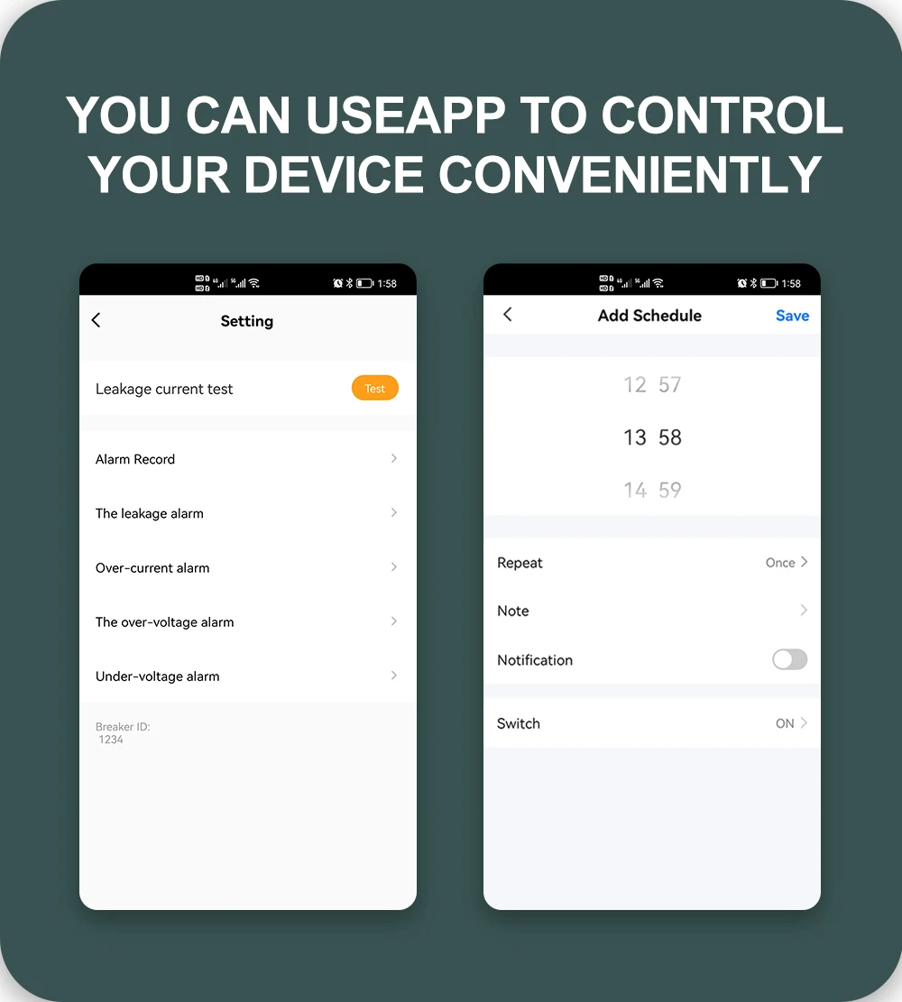 - 4.Can set over voltage/under voltage/over current /leakage current in app or can set these by manual